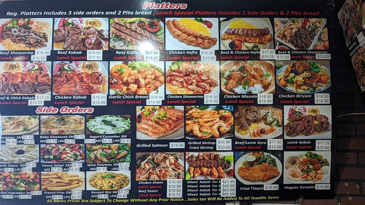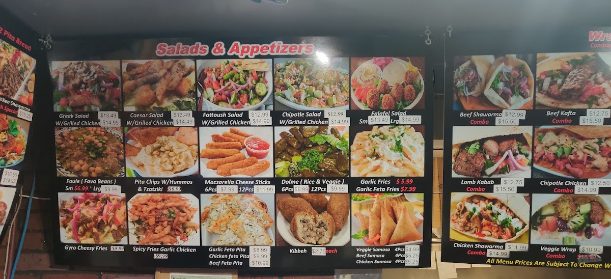 This menu supports a welcoming, informal atmosphere where the food feels like a comforting, satisfying experience. Whether you’re grabbing a flavorful chicken kabob wrap for lunch or enjoying a slower evening meal with friends and family, the combo of fresh ingredients and familiar Mediterranean recipes fits naturally with the relaxed vibe of the restaurant.